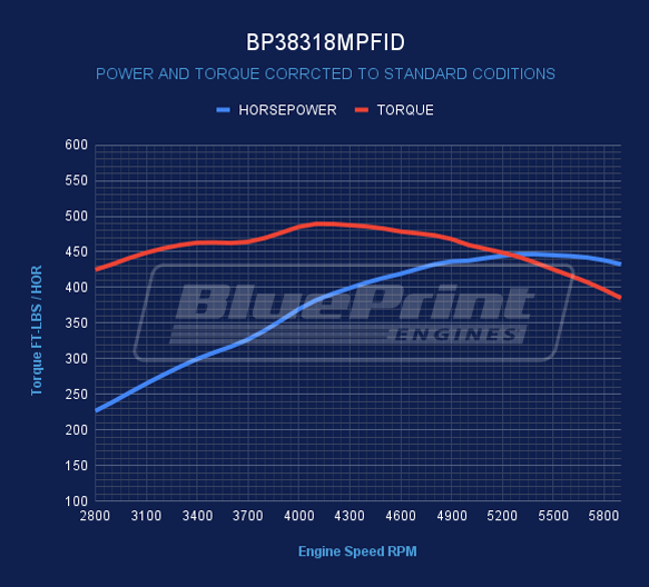 The BluePrint 383 Small Block Chevy compatible performance crate engine is dyno tested at our factory with guaranteed power levels of 436 horsepower and 443 ft. lbs. of torque. The BluePrint designed and fully calibrated, multi-port fuel injection system comes complete with ECU and full Wiring Harness. This fully optimized EFI system has had over a year of extensive on-road, off-road testing under multiple temperature and road conditions.� The optimized calibration is specifically tuned and optimized for this engine and goes well beyond the performance of current self-learn EFI systems on the market today. This BluePrint ECU is designed for hassle-free start up and continuous self-learn operation as you add bolt on parts like headers and exhaust. The ECU controls ignition timing and fuel and installs with 3 simple wired connections (Main Battery, Switched 12V Ignition Wire and Fuel Pump).