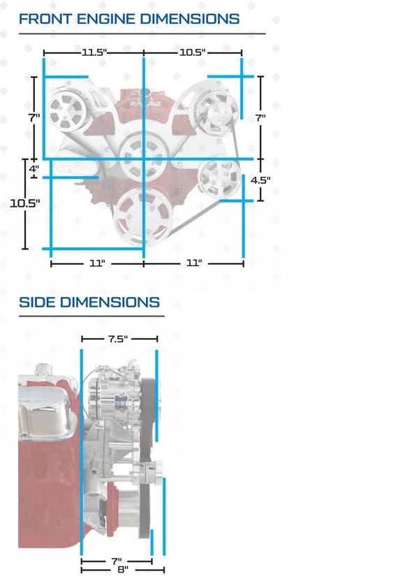 - The front accessory drive on this engine fits many vehicles, however it is the customer responsibility�to accurately�measure and confirm fitment.� Note this is a low-profile design, but things such as power steering hoses, alternator wiring, and additional fittings/fabrication may be required on some vehicles.