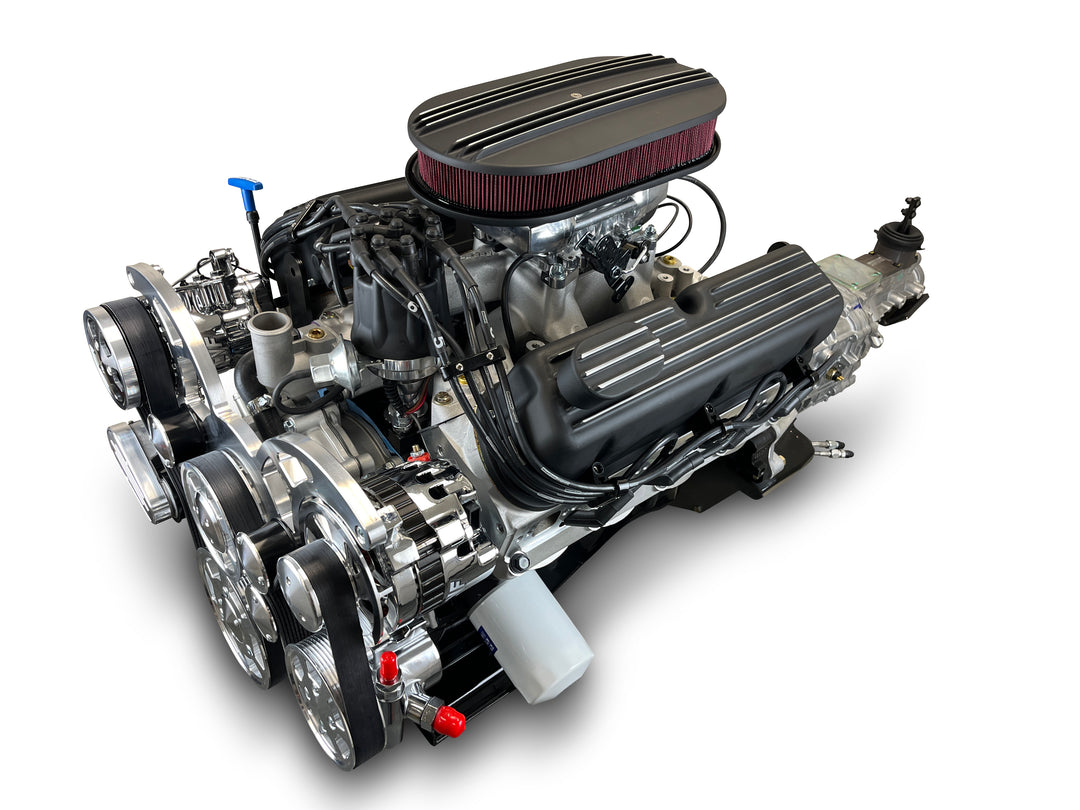 GM Small Block Compatible 400 c.i. Engine and TKX Manual Transmission - 500 Horsepower - Standard Edition Builder Series - Polished Pulley Kit - Fuel Injected