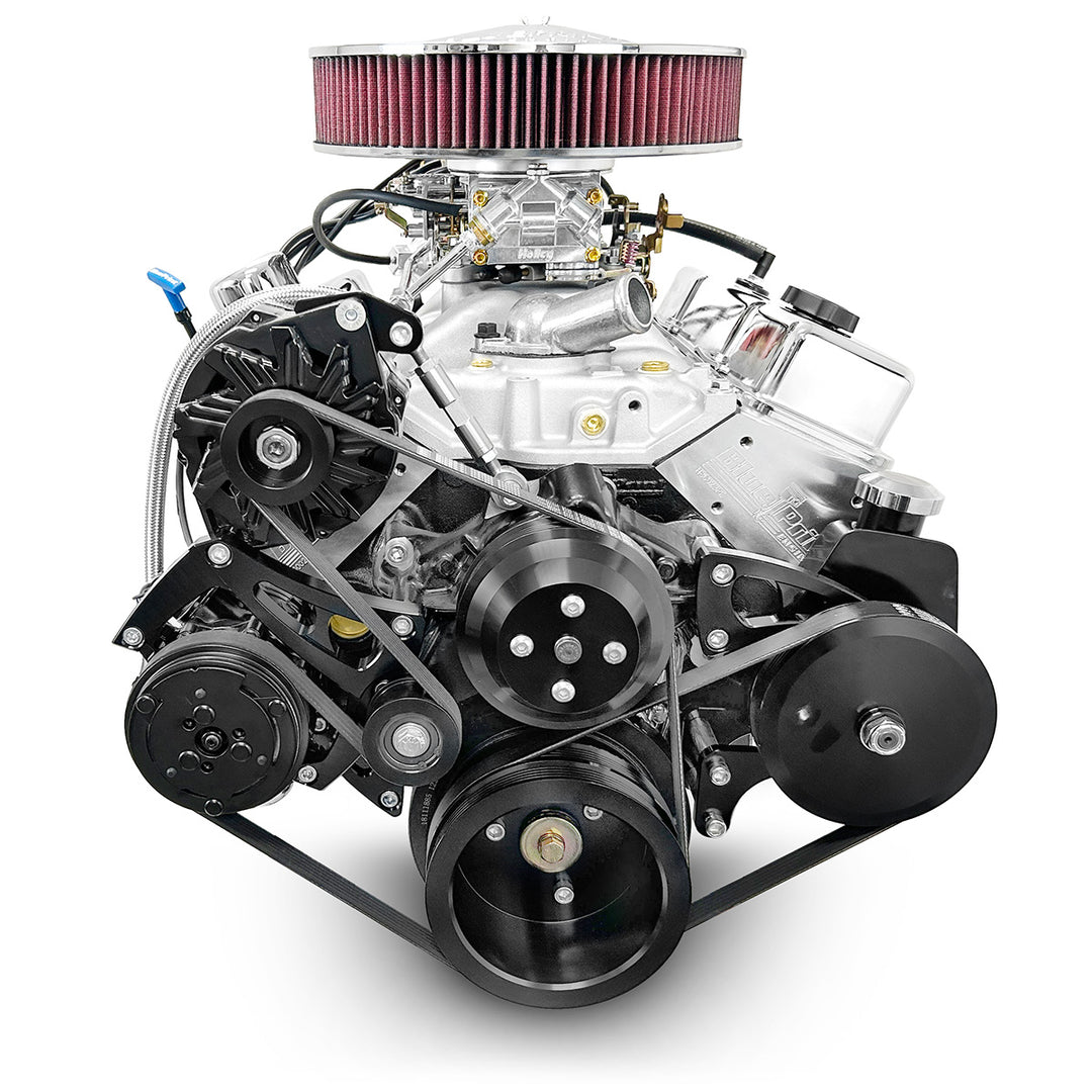 GM Small Block Compatible 383 c.i. Engine - 436 Horsepower - Deluxe Dressed with Black Pulley Kit - Carbureted