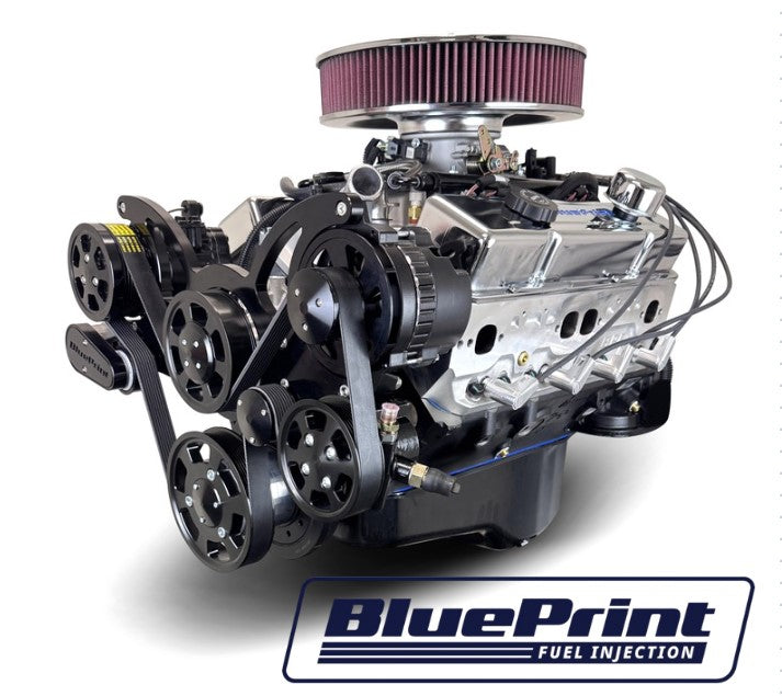 GM Small Block Compatible 383 c.i. Engine - 436 Horsepower - Deluxe Dressed - Black Pulley Kit - BluePrint Engines Calibrated ECU