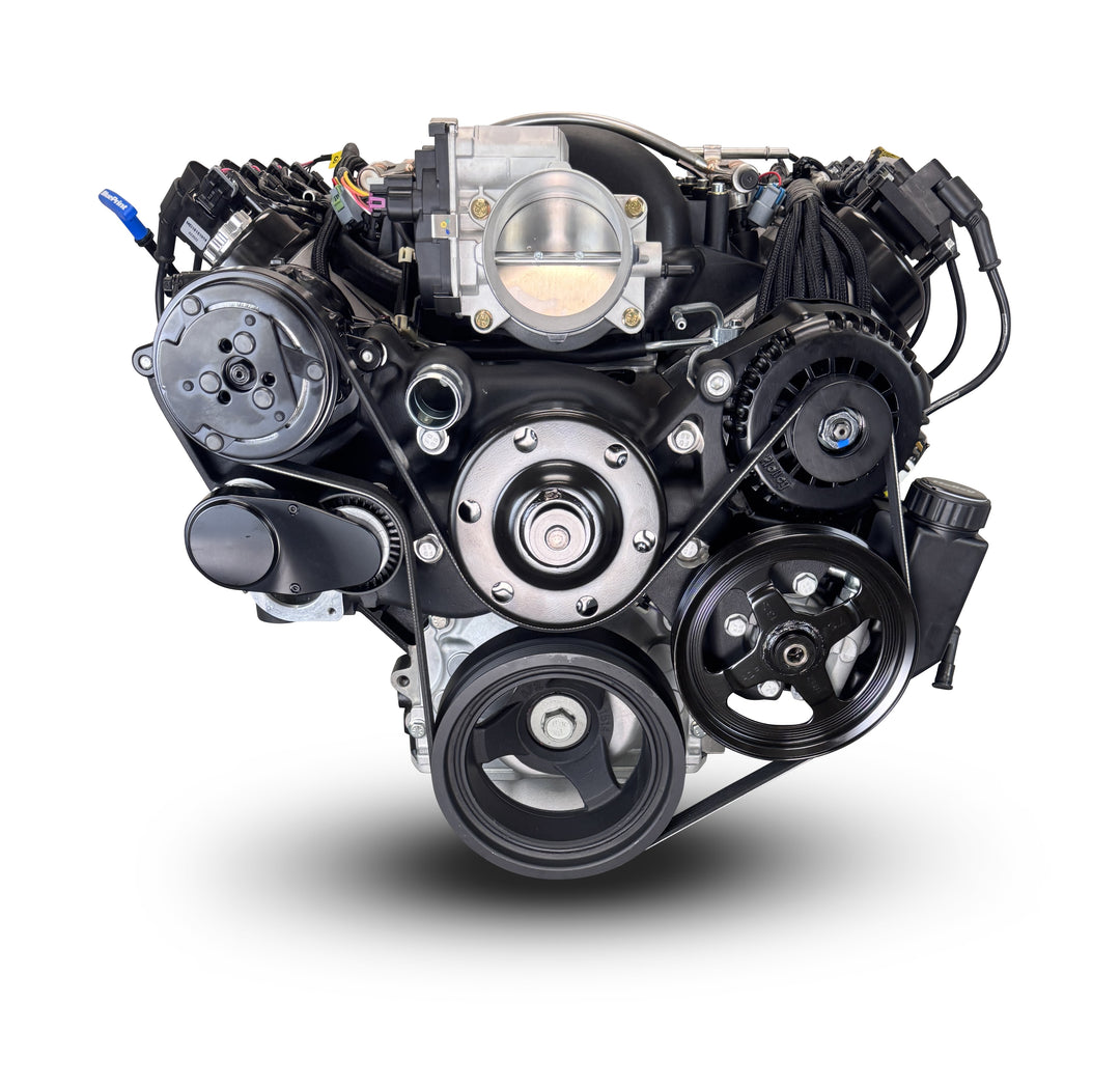 GM LS Compatible 376 c.i. Engine and 4L65/70E Automatic Transmission - 530 Horsepower - Standard Edition Builder Series - Black Pulley Kit - Holley Terminator X EFI System